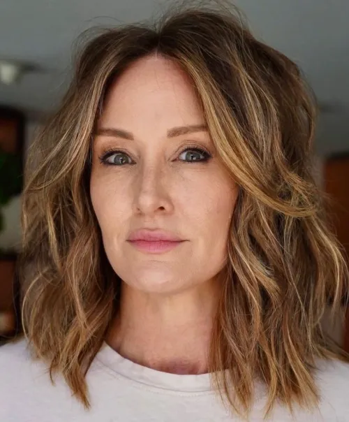 Best face shapes: Oval, round, and square. The layers soften jawlines and add length.