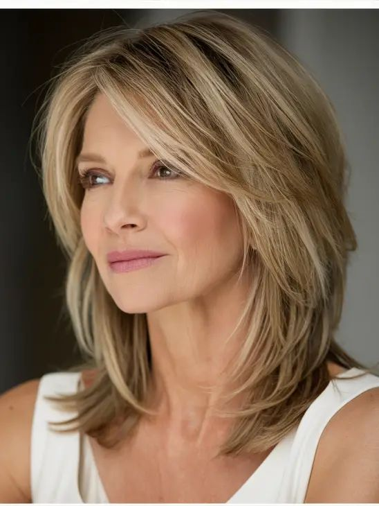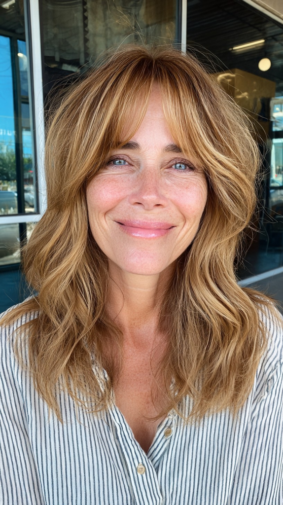 If you love the mid-length look, check out these: medium-length hairstyles for women over 50 — they pair perfectly with curtain bangs.