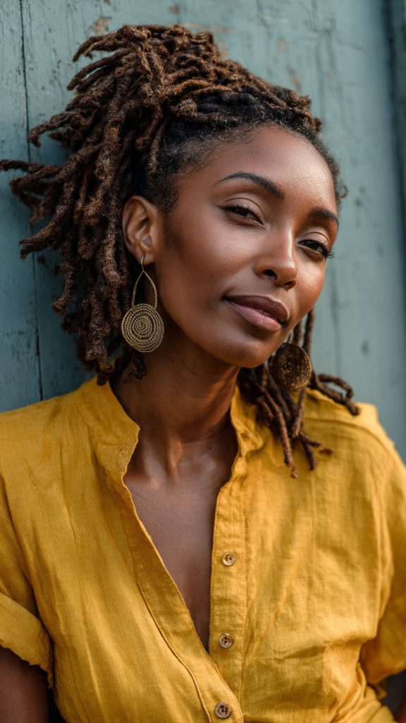 Locs are a powerful expression of identity and confidence. Worn down with a soft shape, they create a graceful and grounded look that suits women in their 30s and beyond.
