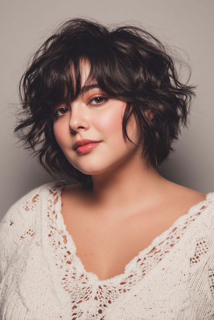 This style works especially well for people who want something edgy yet soft. The key is keeping volume at the crown and avoiding blunt ends at cheek level. Tousled styling enhances the slimming effect and gives the haircut a lived-in, effortless vibe.