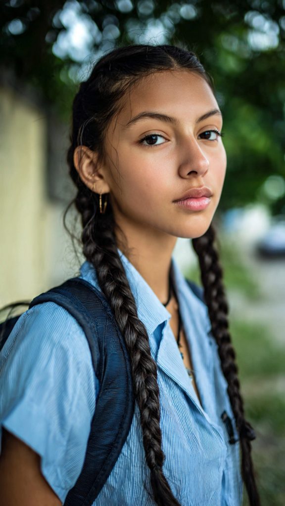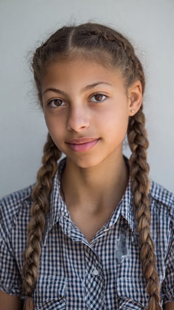 Double braids are playful, practical, and perfect for long school days. This hairstyle keeps hair secure and evenly distributed, making it comfortable for studying and activities.