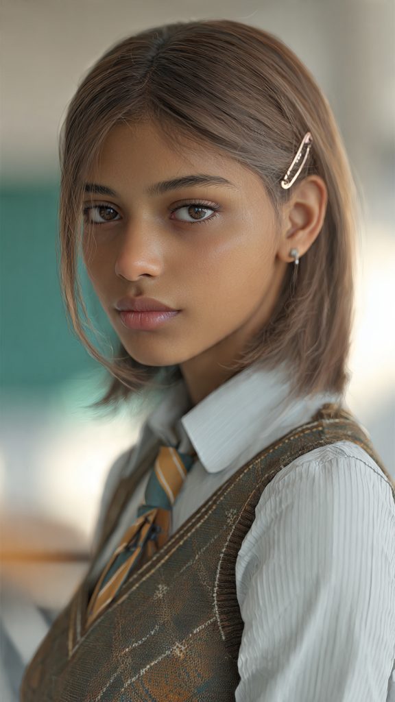 For students with shorter hair, a simple clip can instantly make a hairstyle school-ready. Clipping back one side or the top section keeps hair neat and comfortable.