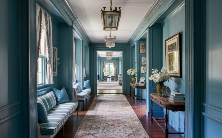 Blue hallway accents help connect rooms and establish a visually cohesive path throughout your home. Whether through painted walls, trim, rugs, or framed art, repeating blue tones in thoughtful ways creates balance and flow. Combined with proper lighting and complementary textures, your hallway becomes a welcoming, intentional part of your home rather than just a passageway.