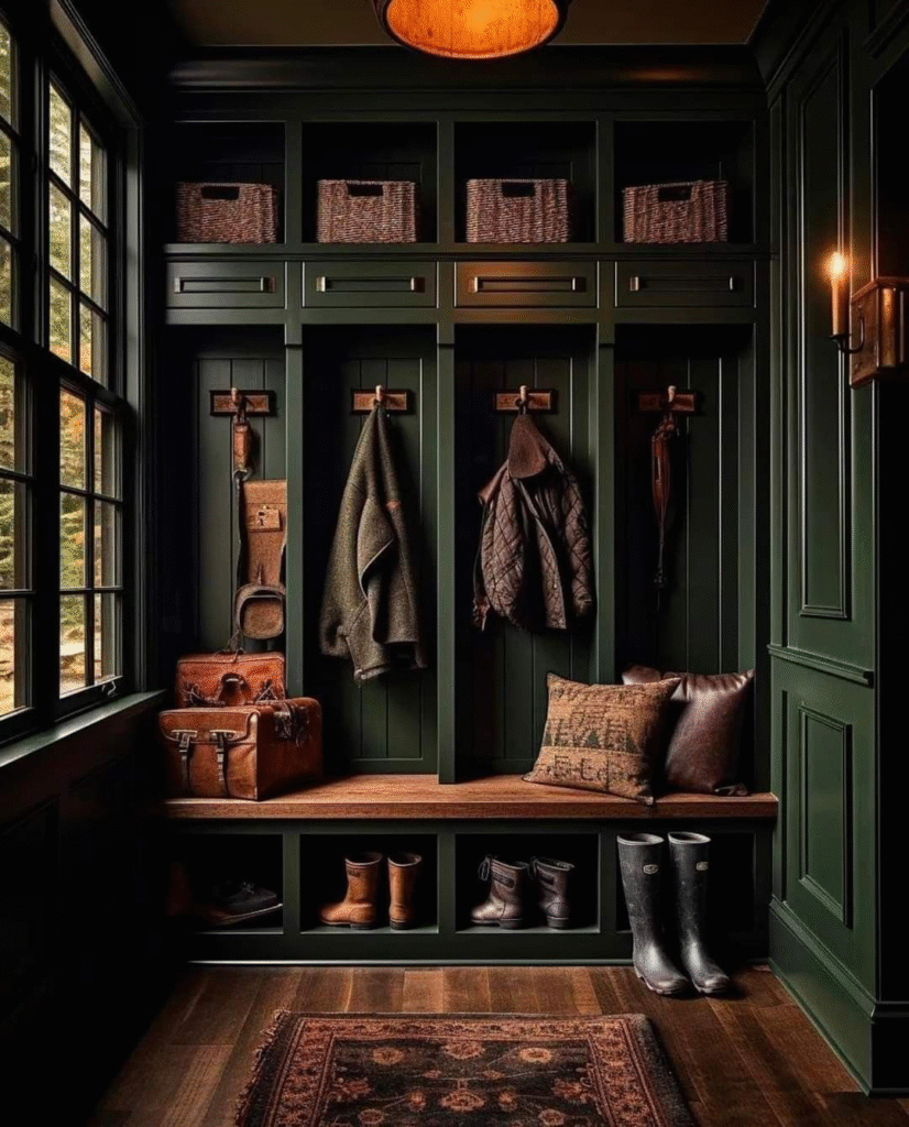 Moody Green Mudroom With Rich, Cabin-Inspired Warmth