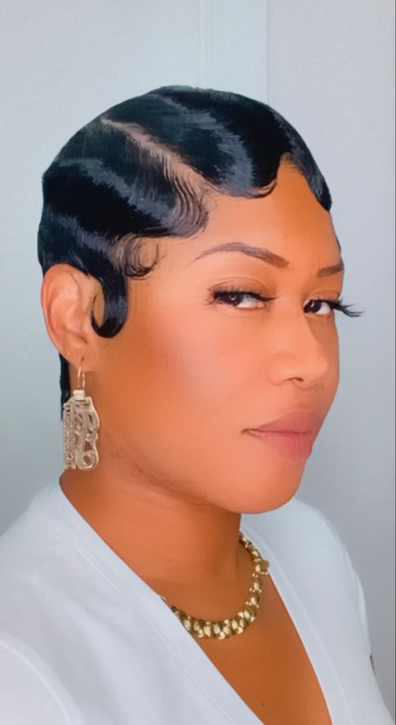 Why it works: Finger waves are a vintage style from the 1920s and 1930s. They involve molding hair into S-shaped waves that lie flat against the head. On a short crop, finger waves are glamorous, unexpected, and deeply sophisticated.