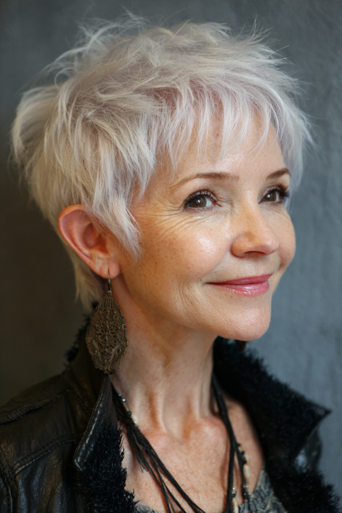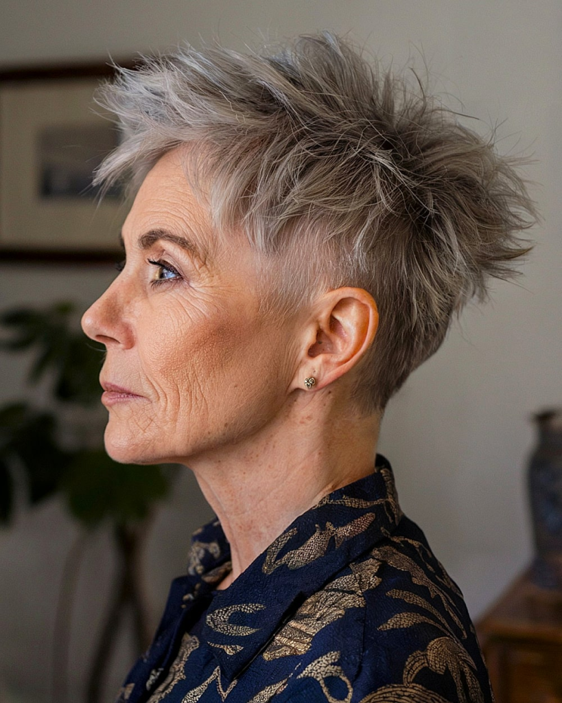 There is a misconception that older women should fade into the background. Funky hair rejects that entirely. A short, edgy cut draws attention upward to your face, your eyes, and your expression. It signals that you are not afraid to take risks. And practically speaking, funky short cuts are often easier to maintain than traditional styles. Shaved sides need no styling. Spiky tops dry in minutes. Asymmetrical shapes look intentional even when you roll out of bed. The seventeen styles below range from subtly edgy to full-on rebellious. Each includes why it works, how to style it, best face shapes, and maintenance needs.