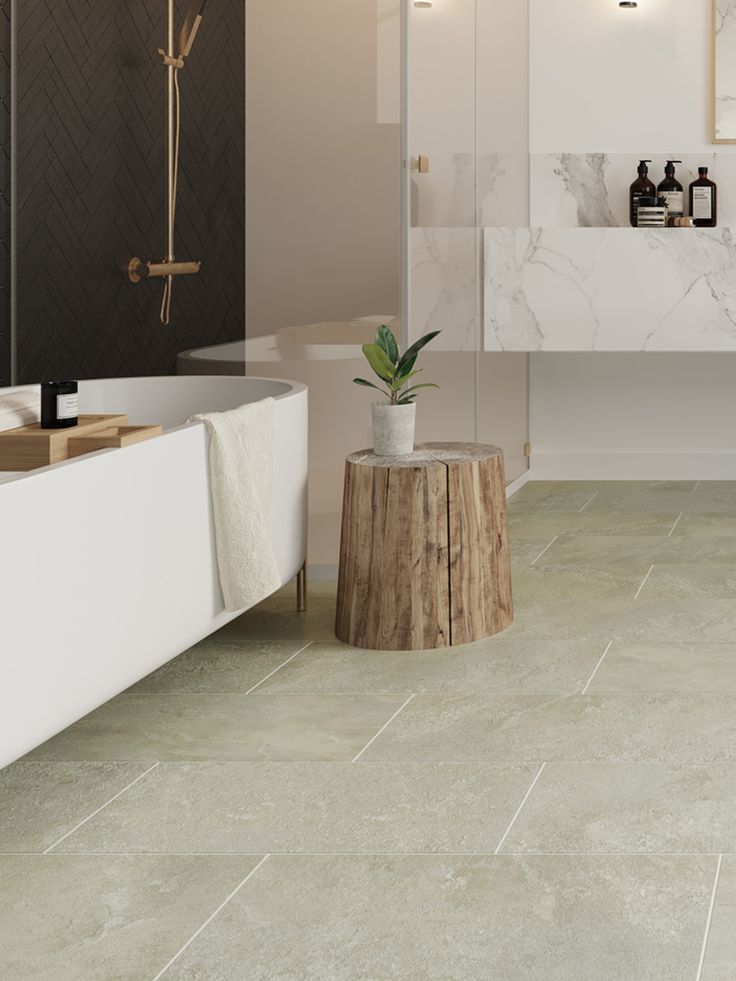 Soft, creamy limestone-look LVP offers a warm neutral that works in almost any space. It is particularly effective in creating a serene, spa-like atmosphere.