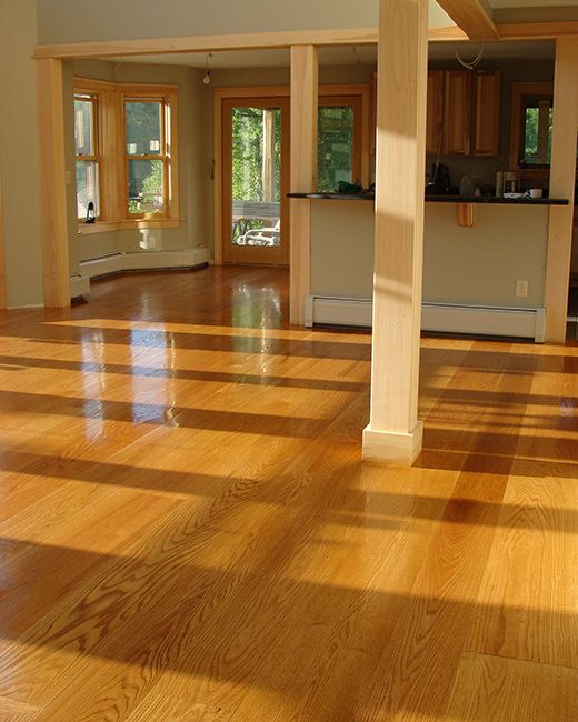Wide planks (7 to 9 inches) in a white oak finish offer a timeless, Scandinavian-inspired look. The light color brightens spaces and pairs beautifully with both cool and warm wall colors.