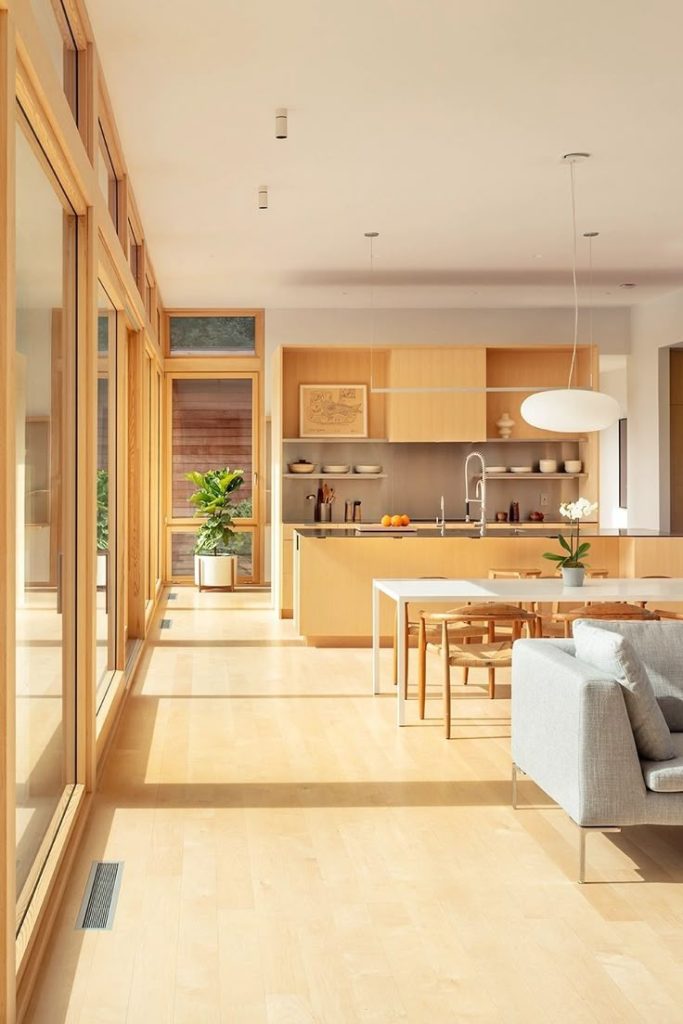 Light, golden maple LVP brings warmth without heaviness. It is an excellent choice for smaller spaces because it reflects light and creates an airy, open feel.