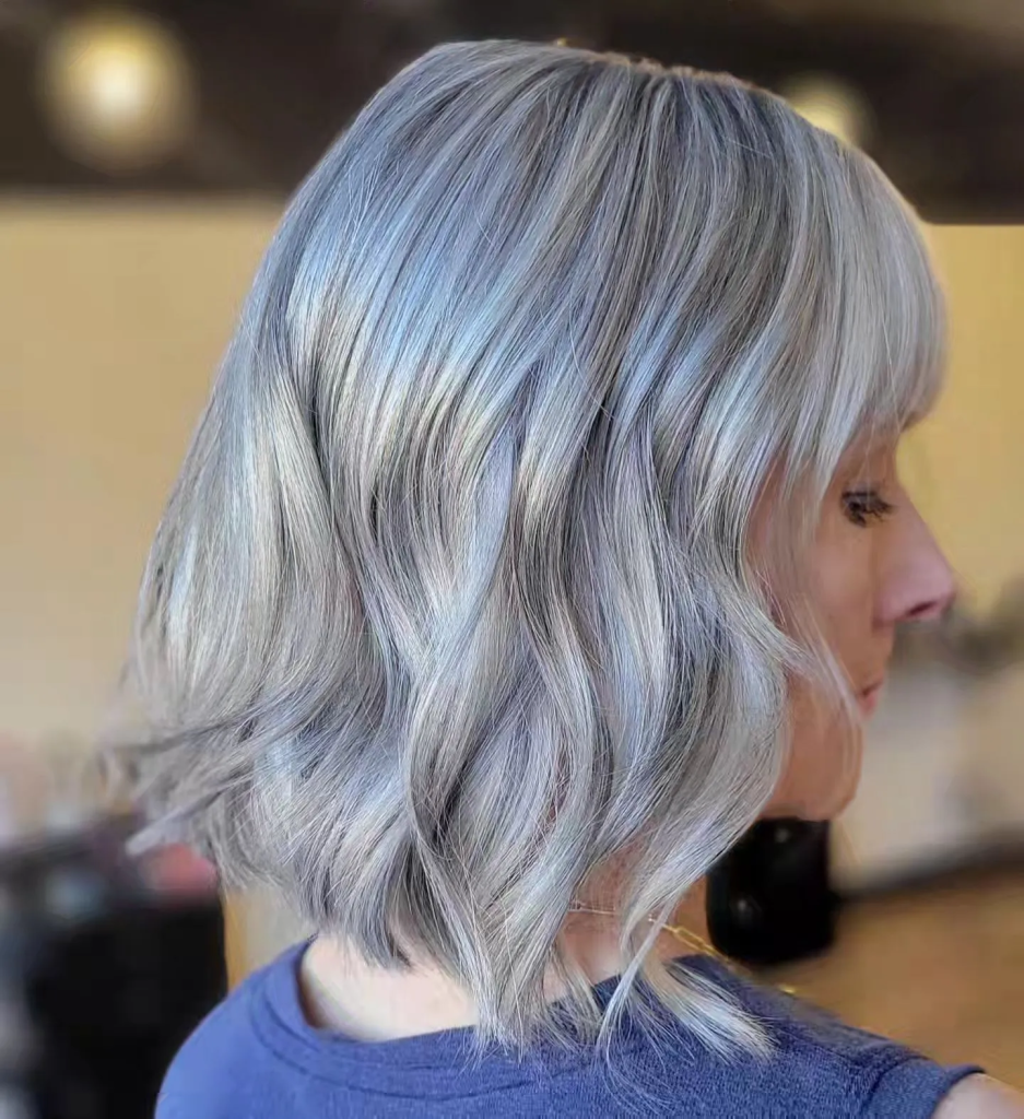 Why it works: Babylights are ultra-fine, delicate highlights that mimic the natural variations in children’s hair. On gray hair, silver babylights weave through your existing color to create soft, seamless dimension. This technique is ideal for women who want to brighten their gray without a dramatic change.