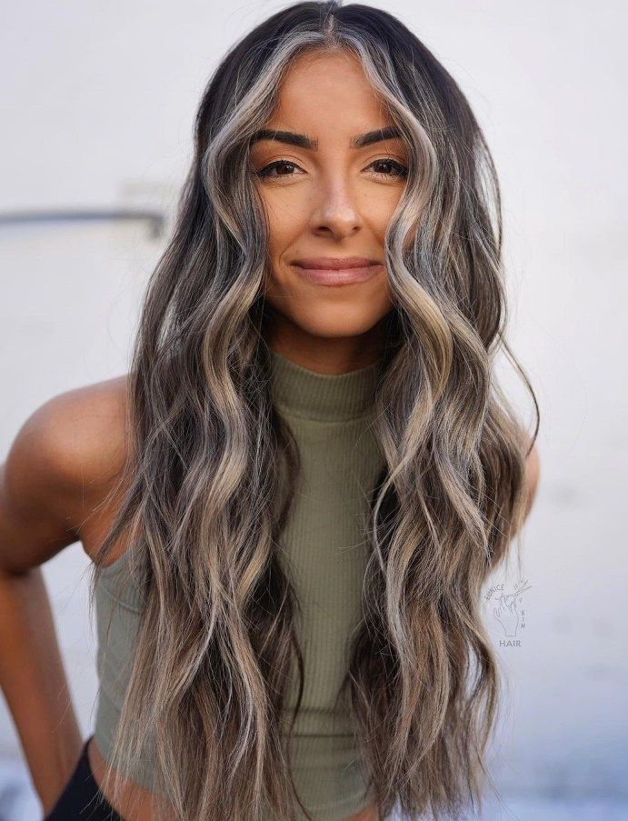 • Dark hair (brown or black): Gray balayage, peekaboo highlights.