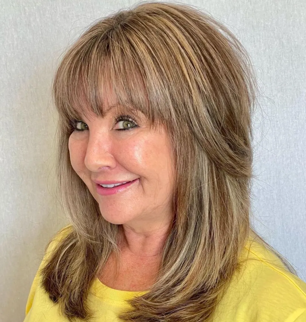 Why it works: This is not just a haircut—it is a color and cut combination. Soft, medium-length layers are paired with strategically placed highlights around the face. The highlights brighten your skin tone and add dimension that makes the layers pop. Silver or gray hair can use lowlights instead for similar depth.