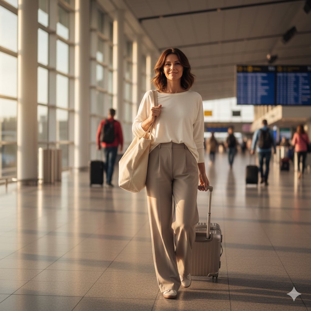 With the right outfit, navigating security, long flights, and connecting between terminals becomes effortless—allowing you to arrive at your destination looking polished and feeling relaxed.