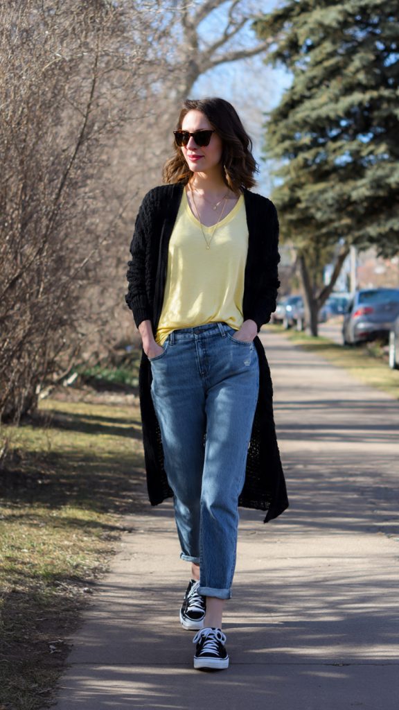 - Add a lightweight cardigan or denim jacket for layering.