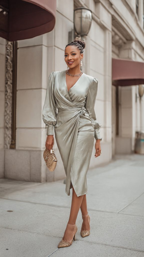 Choose wrap dresses in luxe fabrics like satin or silk blends and pair them with delicate heels and understated jewelry for a refined appearance.