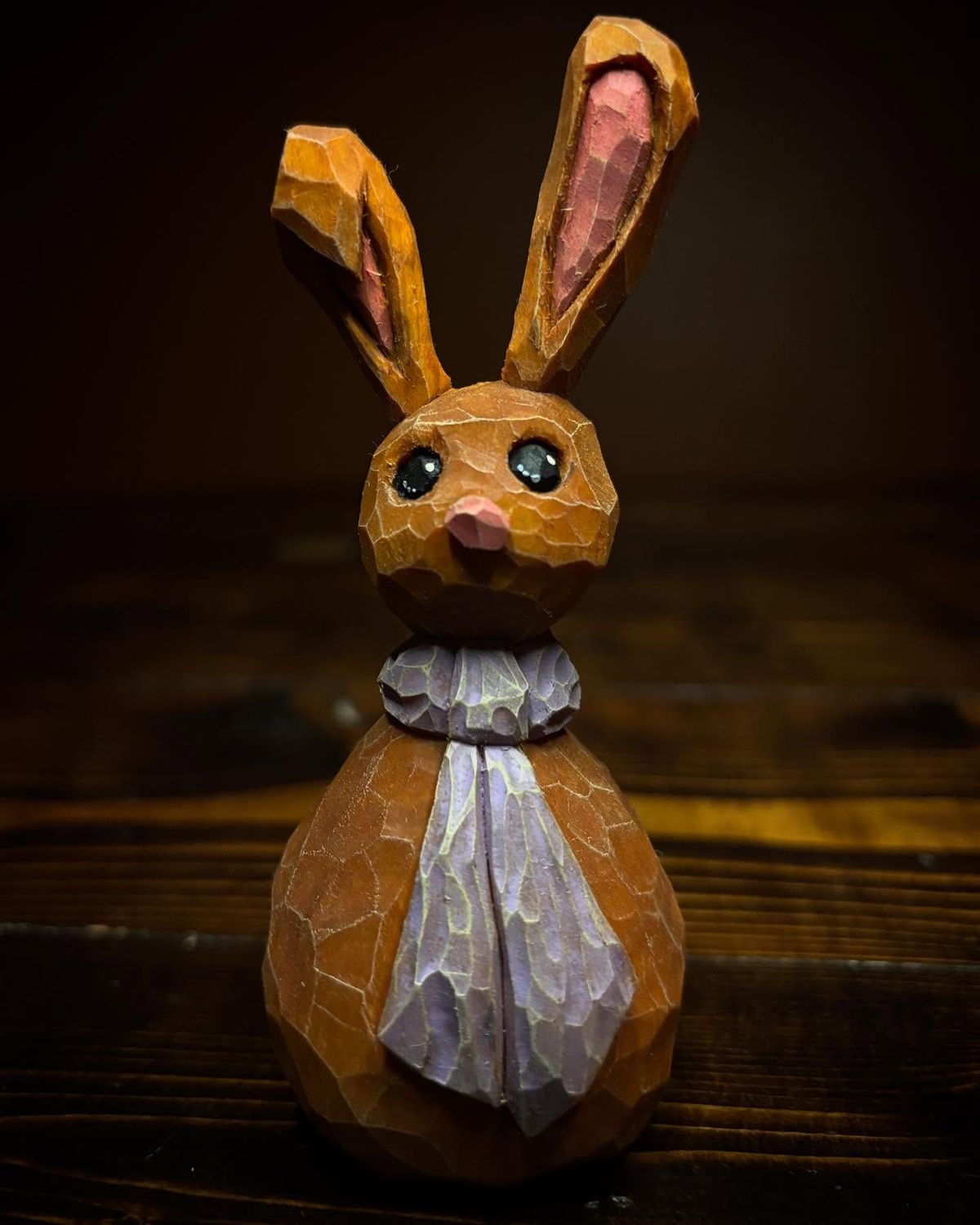 This piece is a masterclass in the “Slow Carve” philosophy, focusing on a textured, faceted finish rather than a sanded-smooth surface. The deliberate knife marks catch the light, giving this spring rabbit a rustic, hand-hewn charm that feels both modern and traditional.