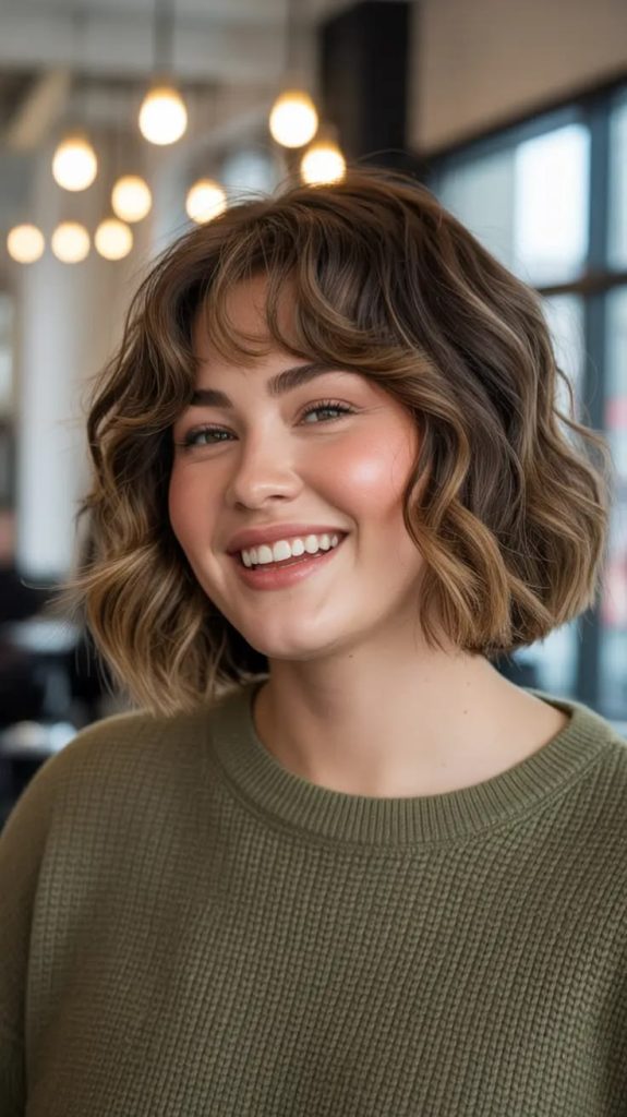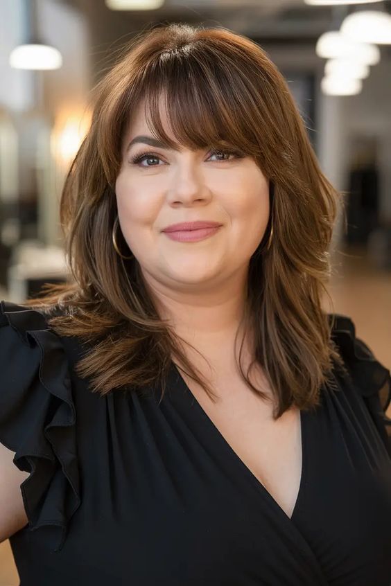 - Why it Works: The length draws the eye down, creating vertical lines. The layers prevent the cut from looking bulky around the cheeks and add movement that distracts from the fullness of the face.