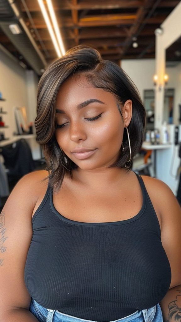 - Styling Tip: For extra drama, sweep the larger section of hair across your forehead to create a soft, face-framing wave.