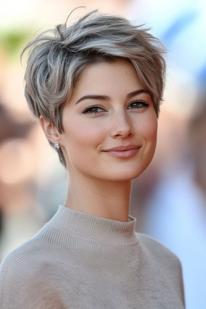 - The Cut: Avoid a cropped, uniform pixie. Instead, ask for a longer, textured pixie with soft layers on top and around the ears. Keep the sideburns a little longer and softer, rather than shaved clean.