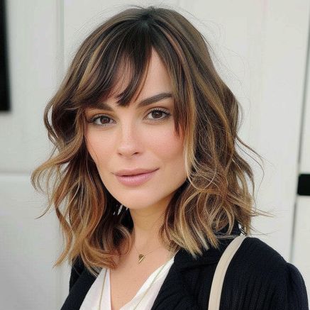 - Styling Tip: Blow them to the side with a round brush for a smooth, curved shape that gently frames the face.