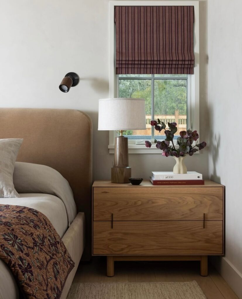 This look is ideal if you want your nightstands to feel intentional but uncluttered. It transforms the bedside area into a warm, textural nook that feels cozy, natural, and effortlessly sophisticated.