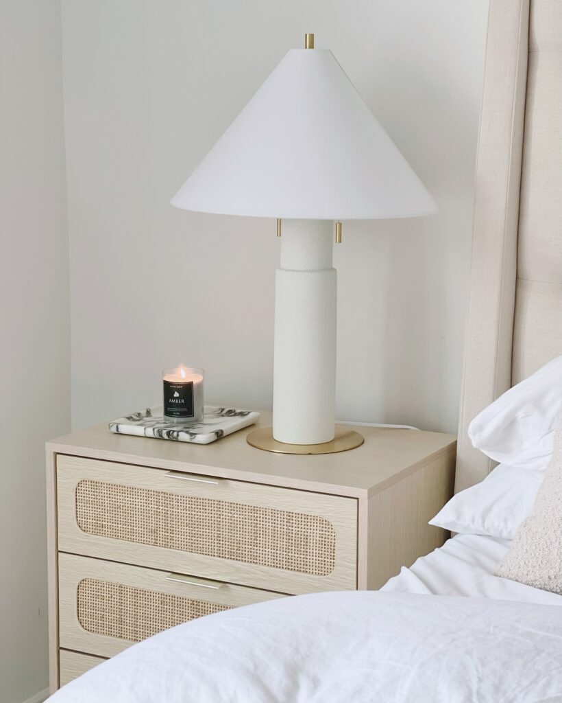 If you love soft neutrals, minimalist styling, and a touch of elegance, this nightstand look is a perfect match.