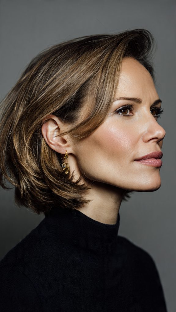A medium bob with a side part is timeless and flattering, creating subtle volume while framing the face.