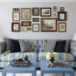 This entryway uses a playful striped flush-mount light to bring personality into an otherwise simple, minimal space. The soft blue-and-white pattern adds a coastal-inspired touch while the brass base keeps the fixture feeling modern and refined. It is the perfect example of how a small ceiling light can still make a big impact without overwhelming the room.