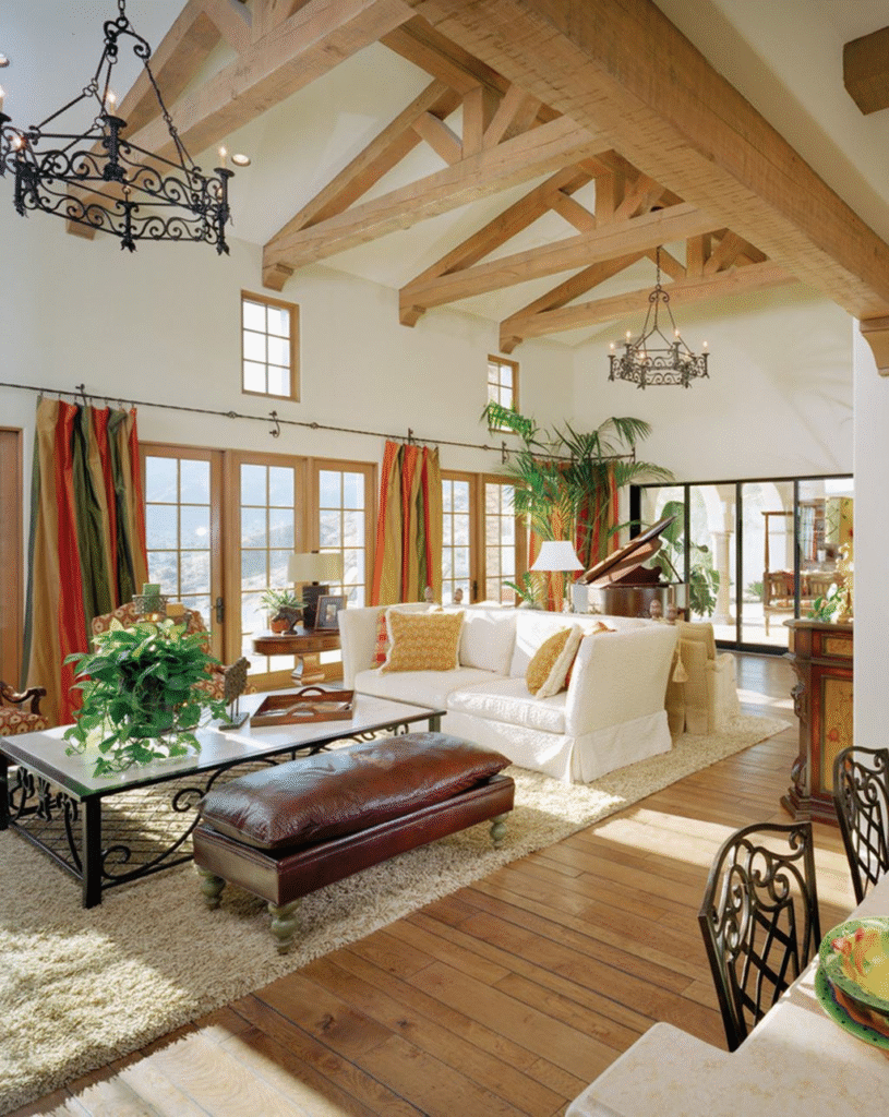 5. Bright Mediterranean Living Room With Exposed Wood Beams