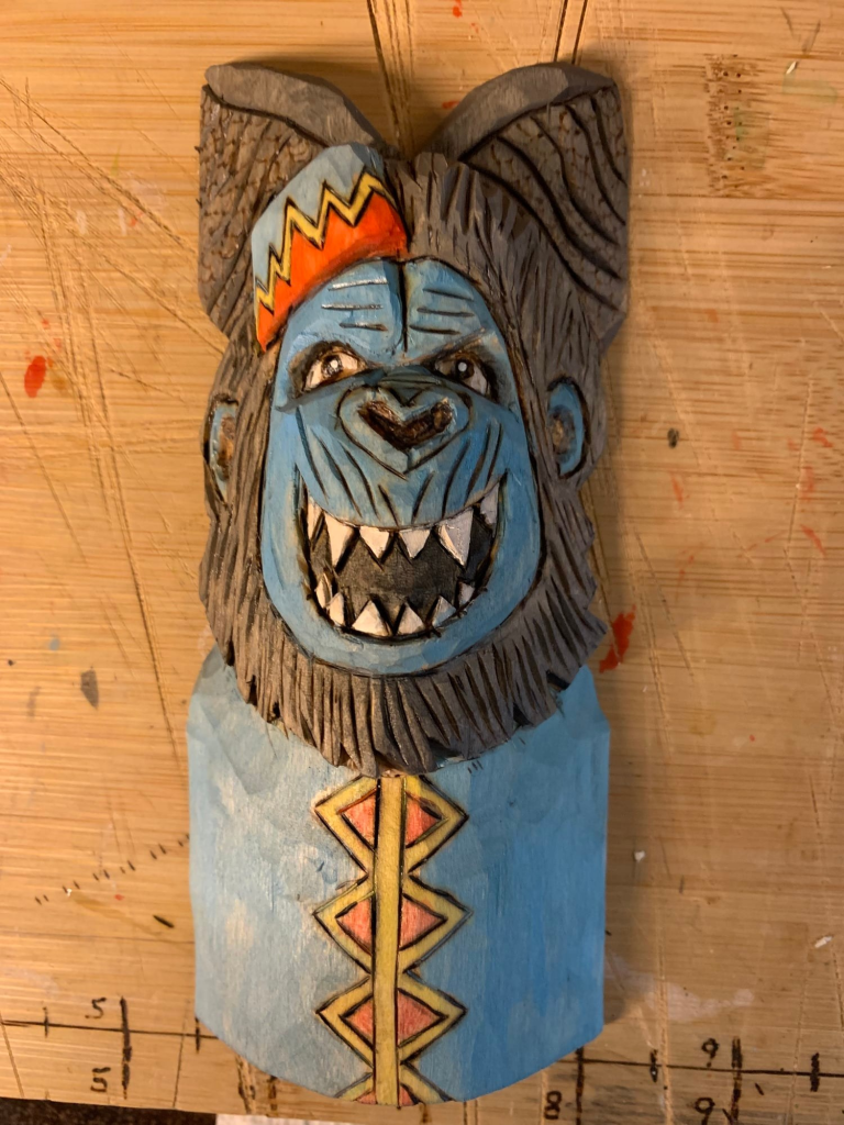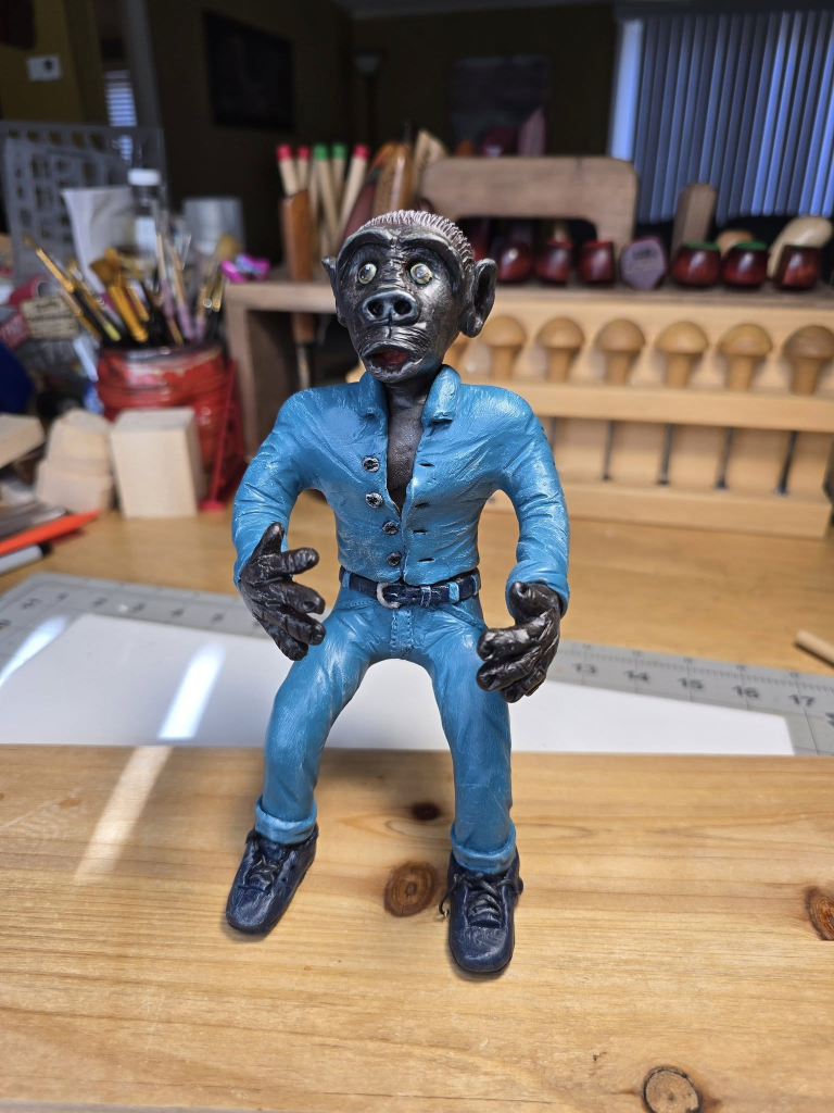 This piece works well for carvers who enjoy imaginative subjects. It shows that monkeys do not need to stay realistic to feel believable.