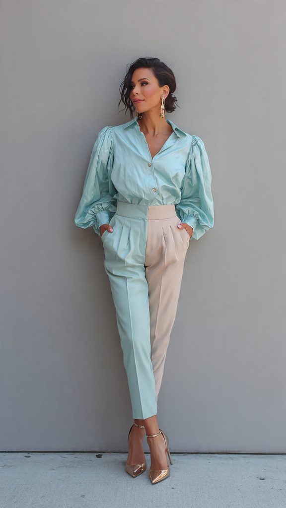 • Bishop or balloon sleeves paired with tailored trousers or skirts for balance.