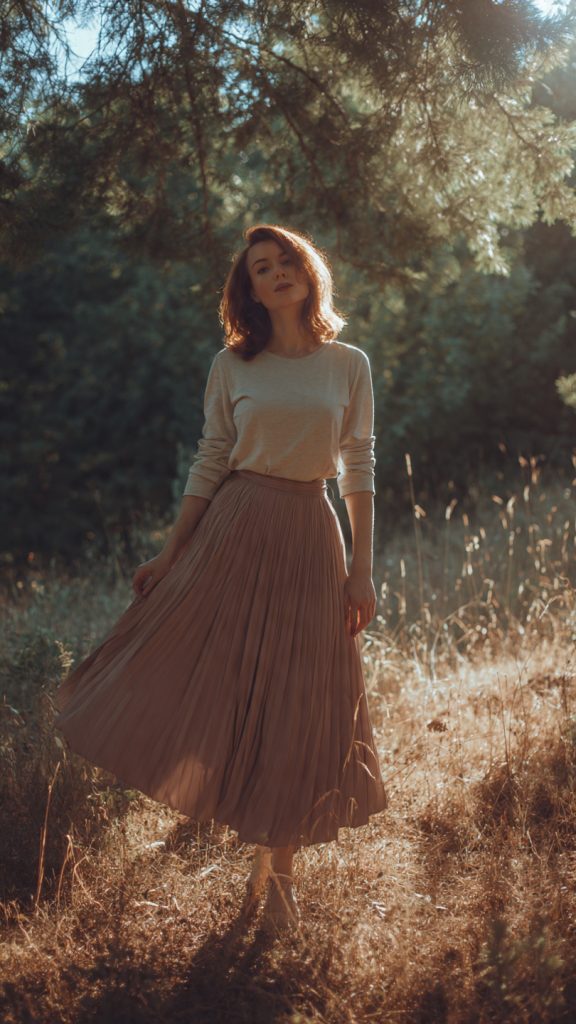 • Pair skirts with fitted tops or lightweight sweaters to maintain proportion.