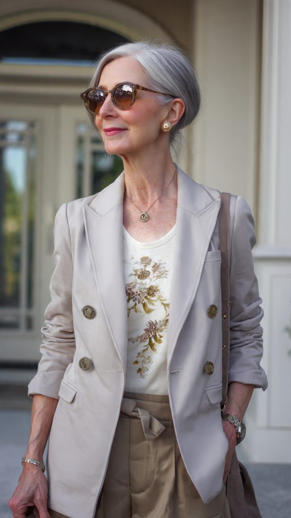 Blazers and jackets provide a contemporary edge while keeping outfits age-appropriate and flattering.