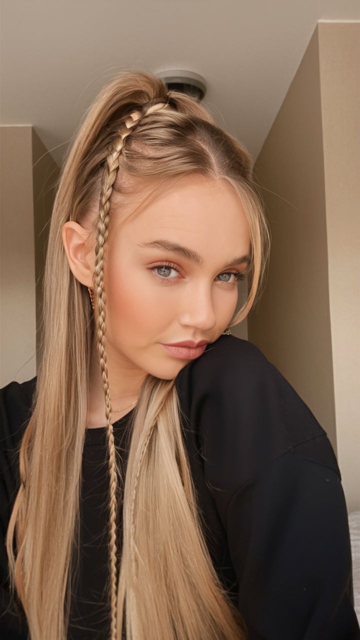 Sometimes the smallest detail makes the biggest impact. The mini braid accent is exactly what it sounds like: one or two small braids incorporated into an otherwise simple hairstyle, serving the dual purpose of adding visual interest and keeping troublesome front pieces under control.