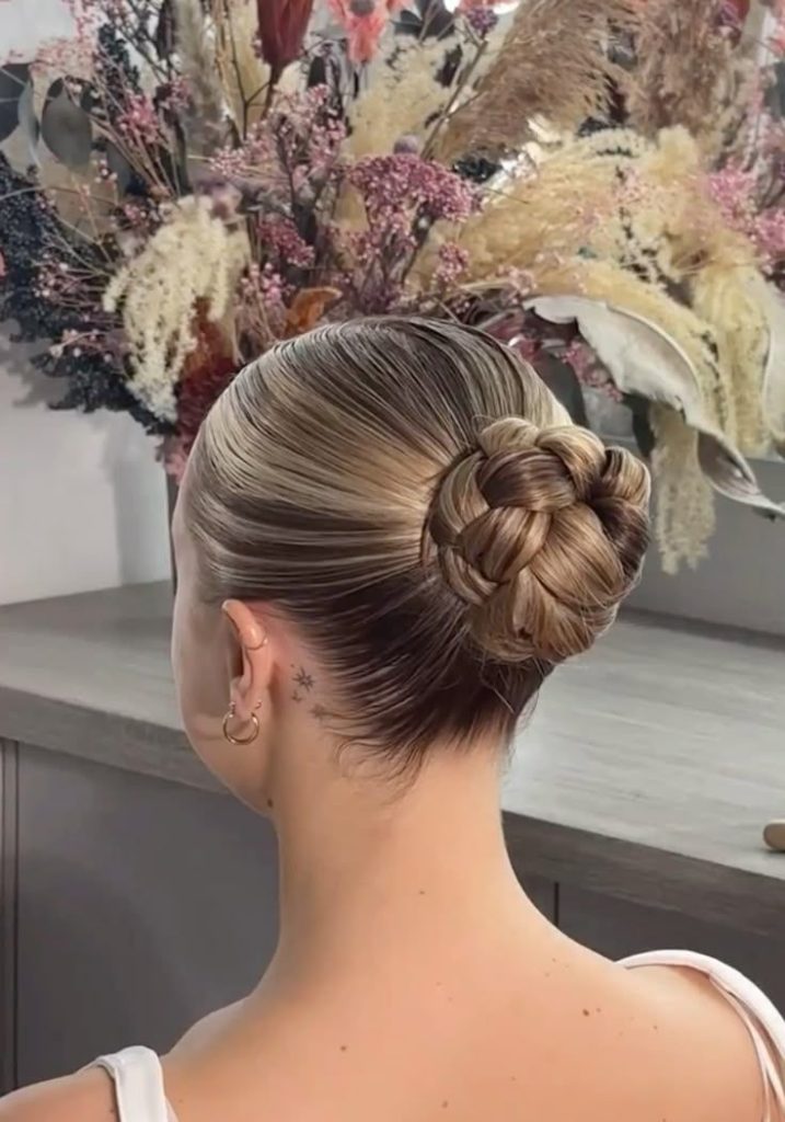 1. The “Clean Girl” Slicked-Back Bun