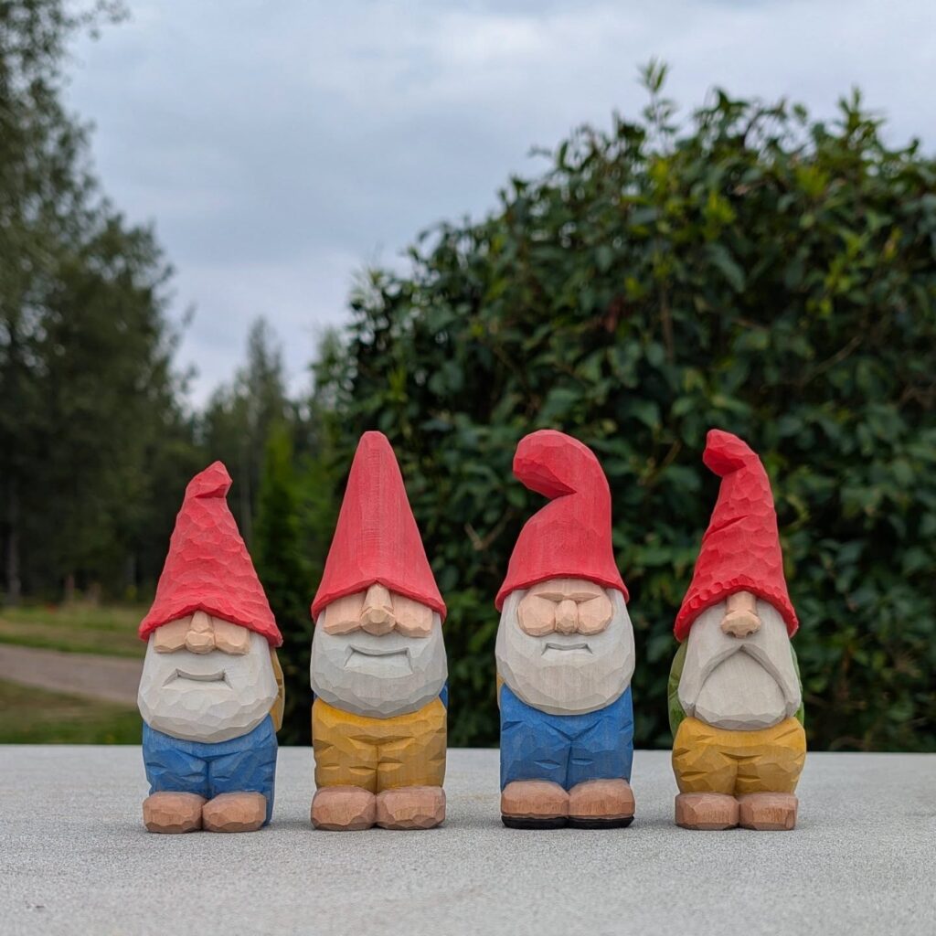 Whittled Garden Gnomes: A Cheerful Lineup of Hand-Carved Charm