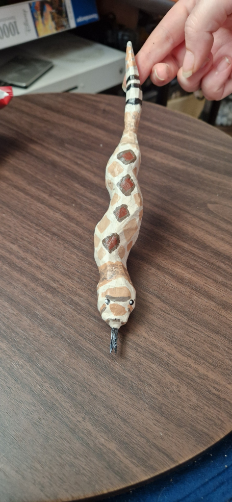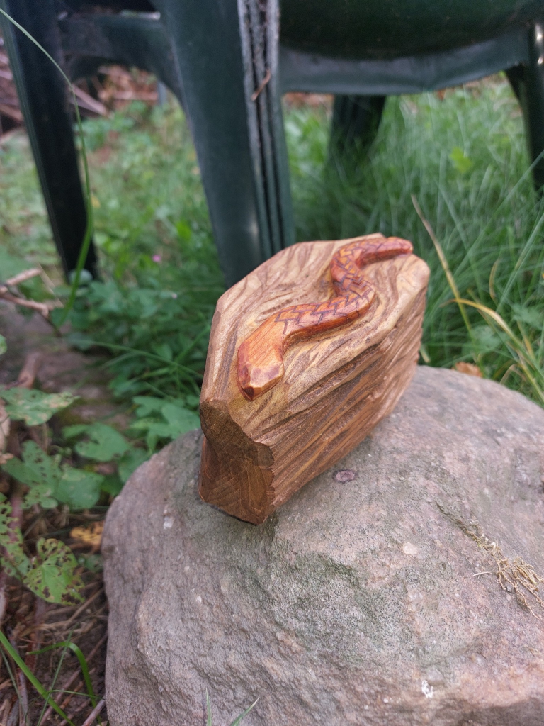 A small snake fits perfectly into a single evening or weekend session. These are ideal if you want a quick win or something you can carry in your pocket while carving.